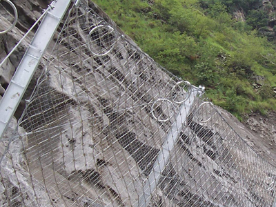 柔性防護(hù)網(wǎng)系統(tǒng)也有好幾種,不一樣的種類有不一樣的用途,根據(jù)工程的實踐情況選擇合適的商品,主動防護(hù)網(wǎng)將全部山體護(hù)住,平安系數(shù)非常高,落石即時松動也不會滾落,由于有柔性防護(hù)網(wǎng)的維護(hù)柔性防護(hù)網(wǎng)被裝置在山體的下面,有落石滾落的時分會被被逼防護(hù)網(wǎng)擋住,柔性防護(hù)網(wǎng)選用柔性鋼絲繩,這種鋼絲繩的拉強(qiáng)度非常大,落石滾落的時分,根據(jù)本人的柔性極好的把動能化解。
